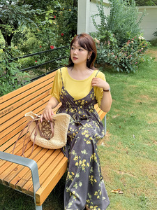 トップリブニット生地サスペンダー厚手のシフォンプリント生地