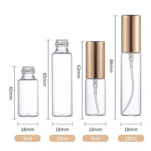 5ml-10mlスプレー分注ボトル ガラス香水瓶 携帯用サンプル包装材 透明ボトル 即納 空ボトル