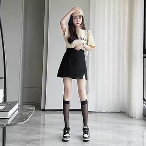 2022年夏新作小柄スーツヒップカバーアラインスカートハイウエストレディース露出防止黒スリムスカート