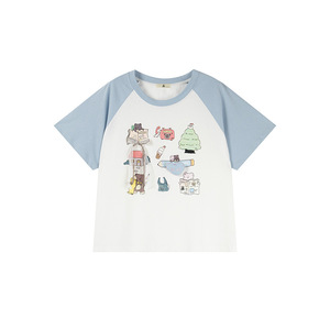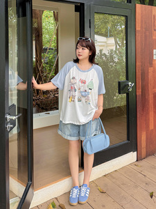 Shuangtian 2025 夏の女性のファット mm プラスサイズ痩身 100kg ラグランスリーブ漫画プリント T シャツ 9019