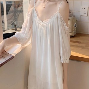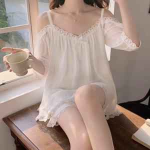 Huaying パジャマ ワンショルダー メッシュ パジャマ セット 夏 ホーム服 薄い インターネット セレブ ピュア ディザイア プリンセス スタイル コート スタイル