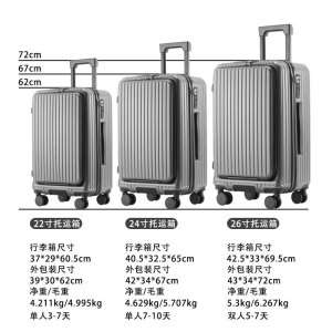 新しいフロントオープン大容量ジッパートランク 24inch 高品質、強力で耐久性のある多機能パスワードトロリーケース