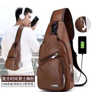 クロスボーダー新しいカジュアルメンズショルダーバッグアウトドアスポーツ USB 充電チェストバッグ男性 PU ビジネスメッセンジャーバッグ