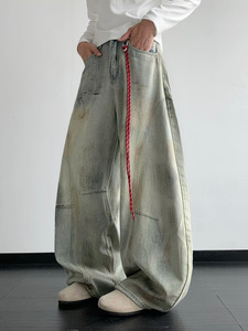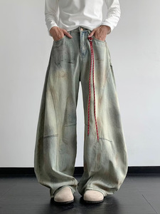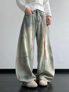 日系慵懒原宿气质水洗镰刀长裤2025潮流新款复古脏染弯刀牛仔裤子