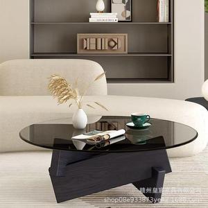 強化ガラスラウンドコーヒーテーブル小さなアパート無垢材ホテルリビングルームバルコニー北欧ライト高級B&B小さなラウンドテーブル