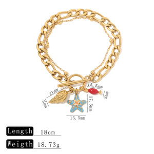 オーシャンスタイルの二層ブレスレット、ヒトデと巻貝のステンレススチールペンダント、ゴールデンOTバックル、ファッショナブルで多用途なハンドアクセサリー