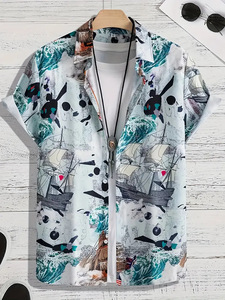 2025 新しいトレンディなクールな夏の新しいメンズ 3D プリントカジュアルルーズ半袖シャツカーディガン男性