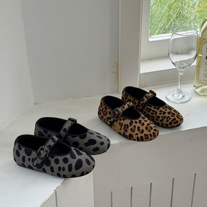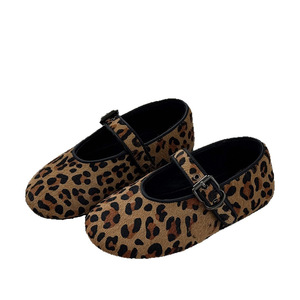 おしゃれ〜女の子のヒョウ柄ワンストラップおしゃれな浅口革靴子供用馬毛ソフトソールメリージェーンシューズプリンセスシューズ