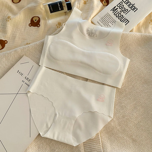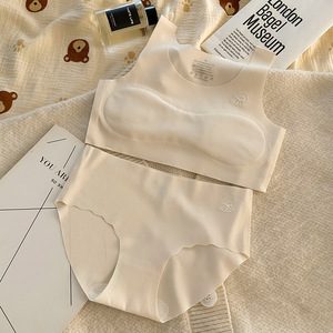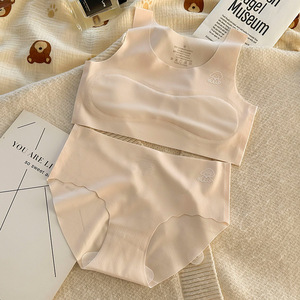 女の子のシームレスなヌード下着セット、ワンピース通気性ブリーフ、快適な露出防止、膨らみ防止ブラジャー