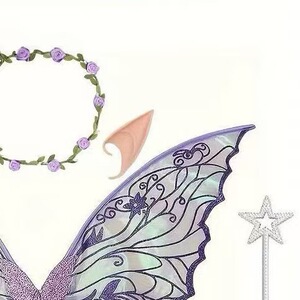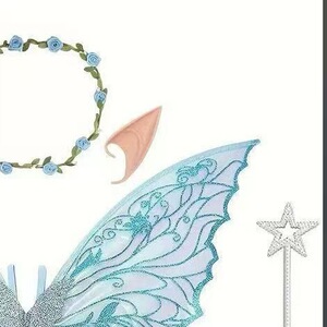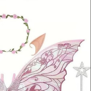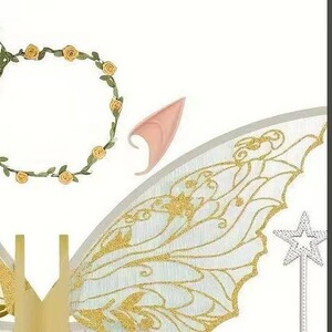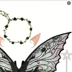 万圣节新款精灵翅膀装扮大号欧根纱金粉闪亮透明翅膀精灵耳朵花环