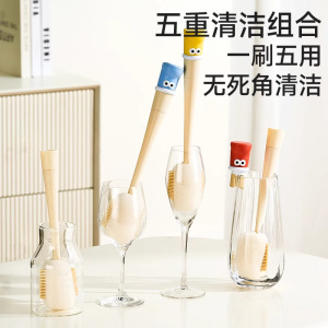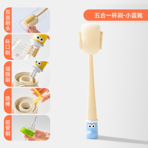 【オリジナル】小型ブーツ型5in1カップブラシ 長柄多機能保温カップ蓋ブラシ 哺乳瓶ブラシ クリーニングスポンジブラシ