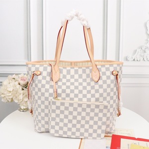 工厂真皮女包棋盘格购物袋大容量妈咪包单肩托特单肩包2025新款