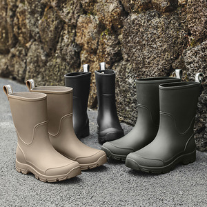 跨境日韩时尚中筒男雨鞋户外厚底防水雨靴防滑厨房胶鞋百搭洗车鞋