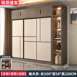 长200*高220*深50 三门主柜+顶柜+边柜【榆木灰】