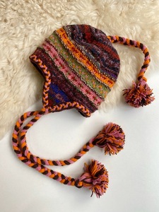 泊物志尼泊尔手工复古彩色毛线辫子帽秋冬保暖护耳显脸小套头帽
