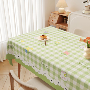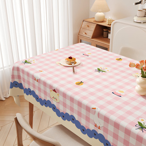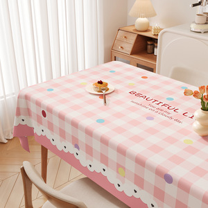 卡通桌布防水防油免洗奶油风pvc餐桌台布氛围感ins风格子茶几盖布