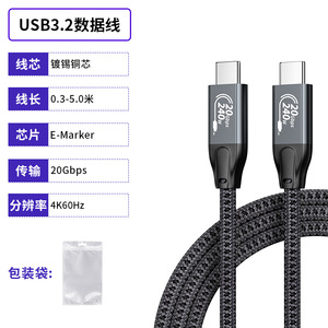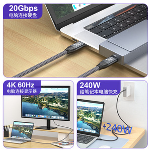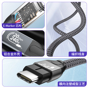 USB3.2 フル機能ケーブル内蔵チップ PD240W 高速充電 20Gbps 伝送デュアル Type-C データケーブル