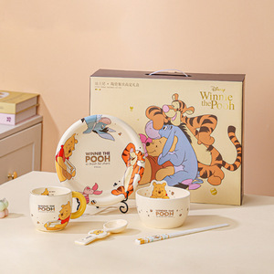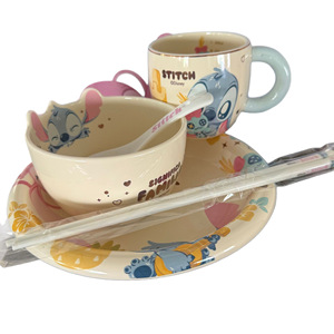 ステッチの新作セラミック5点セット、一人用、高見えドリンクカップ、子供用食器、ボウル、箸、プレート、スプーン