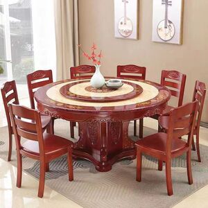 大理石のダイニングテーブル家庭用無垢材ラウンドテーブルフルセットターンテーブル付き中華風ラウンド彫刻ダイニングテーブル組み合わせ