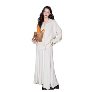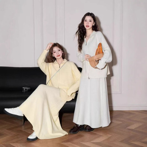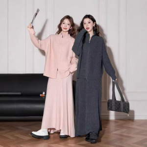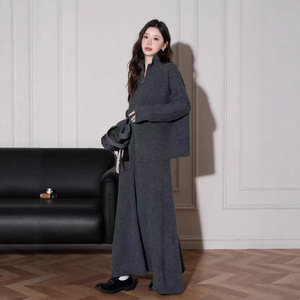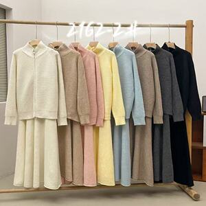 ヨーロッパとアメリカのクロスボーダー新しいスタイルのダブルジッパーラグラン長袖ニットカーディガンスカートツーピースセット女性の多用途カジュアルスーツ