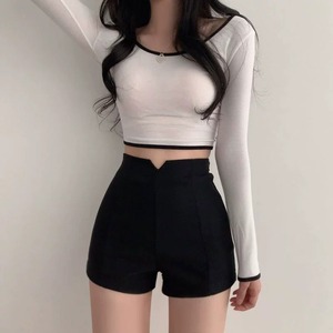新しい 20A スリムフィット弾性韓国スタイルホットパンツトレンディカジュアルパンツワイドレッグショーツ女性のハイウエストインスリム 23 秋