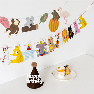 かわいいカラフルな漫画の動物の誕生日フラグ赤ちゃんの誕生日アレンジメント装飾背景壁フラワーパーティー色の旗