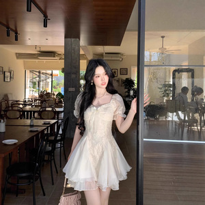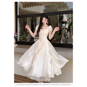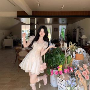 ブロベラン白茶と風純粋な欲望白月光気質カットフラワーパフメッシュスプライシングドレスプリンセスドレス
