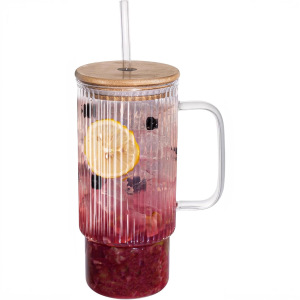 Amazonクロスボーダーホットモデル16OZハンドル付きガラスストローカップ縦縞カーカップ大容量サポートラベル