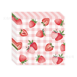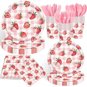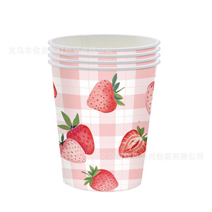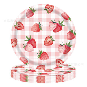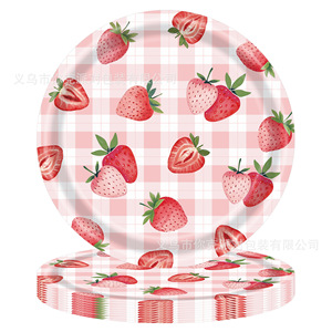 新しいイチゴをテーマにしたパーティー食器使い捨て紙コップ紙皿女の子ピンクフルーツパターンセット