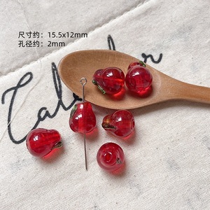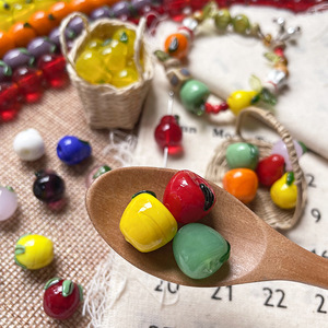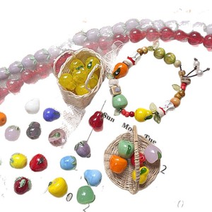 [フルーツマーケット] サマーアップルと洋ナシインスタイルガラスグリーントマトイントストリングビーズハンドメイドDIYブレスレット