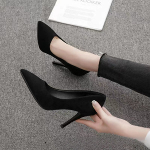 大きいサイズのハイヒール、スティレットヒール、新しい黒の尖ったつま先、春と秋の浅い口のプロの作業靴、女性用