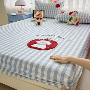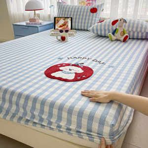 漫画の厚手の純綿の古い粗い布のベッドシーツ、シングルピースの綿の子供用ベッドシーツカバー、綿と麻のマットレスプロテクター、3点セット