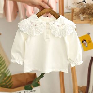 女の子の春の綿長袖シャツ春と秋の新しいラペル白トップ秋のインターネット有名人の女の赤ちゃん底シャツ