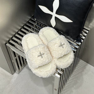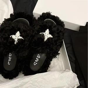 25年秋冬SMFK女性用黒毛皮スリッパ、ウー・シュアンイーと同じスタイルのアウターウェアウールベルベット、厚底