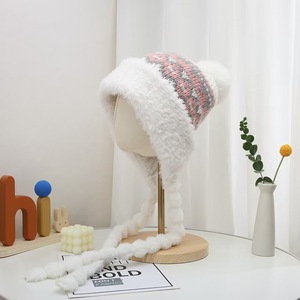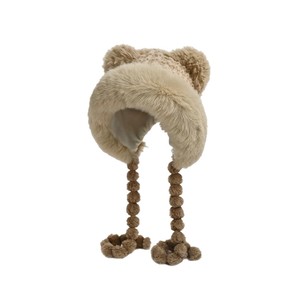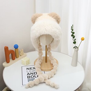 冬の女性用のかわいいクマのぬいぐるみ帽子、厚くて暖かい、顔が見える小さな耳保護帽子、甘くて多用途な防寒雷峰帽子