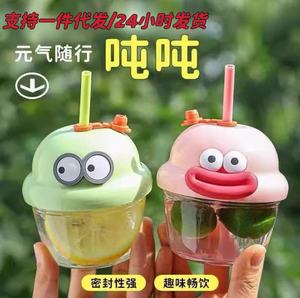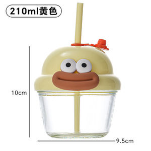 网红墩墩杯迷你玻璃杯可爱卡通儿童水杯牛奶咖啡饮料吸管杯礼品杯