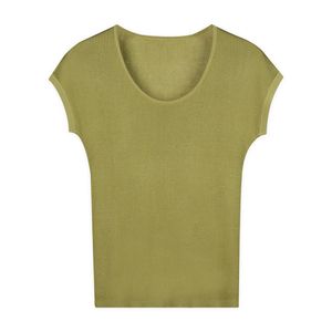 Meiyang 同じスタイルの夏クール日本三菱トリアセテートテンセル U ネック半袖ニットスリムフィット T シャツ女性用 HH