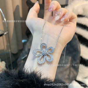 梵家项链高版本厚镀18K玫瑰金镶钻太阳花吊坠满钻镂空花朵女款