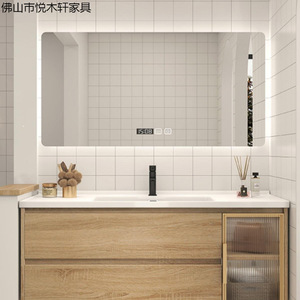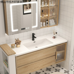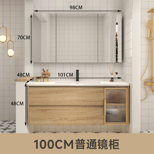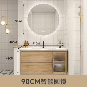 日式原木风浴室柜镜柜组合卫生间洗脸盆柜洗漱台一体洗脸盆柜套装