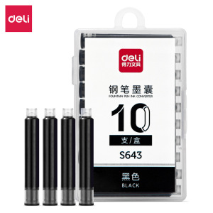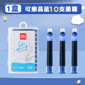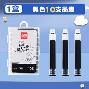 得力速干墨囊小学生专用晶蓝纯蓝黑色3.4可替换通用钢笔墨囊墨水