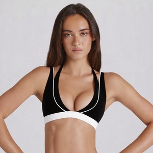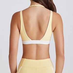 コントラストカラーのフェイクツーピースホルターネックヨガブラ、胸パッド付き、調節可能なアウターウェアスポーツトップ、ランニングトレーニングフィットネスウェア