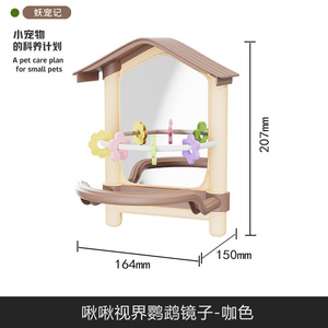 妖精ペット記録 大型チューイングミラーパロットミラー装飾鳥かごペンダントアクセサリー虎皮牡丹黒鳳鳥おもちゃ