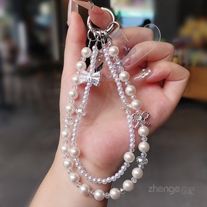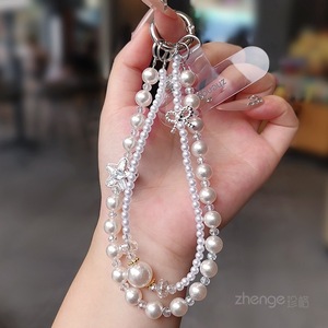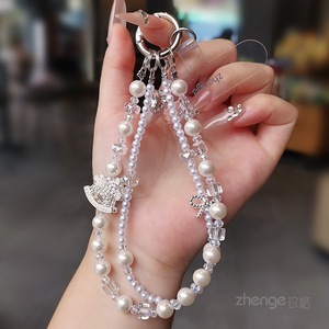 パール携帯電話チェーンイン女性のファッション手首クリスタルペンダントジュエリー絶妙な手作りビーズショートハンドチェーンストラップ