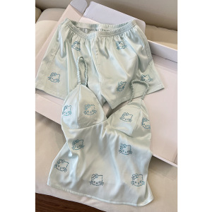 Pure Desire かわいいキティホットダイヤモンドパジャマ胸パッド付き女性の夏クールアイスシルクホーム服 2 点セット