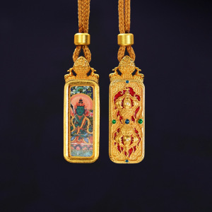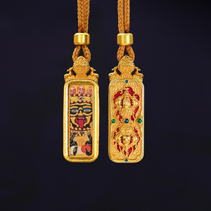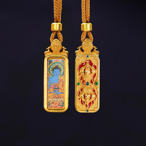 新款藏式描金小唐卡吊坠八大守护神随身佛牌黑财神绿度母扎基拉姆