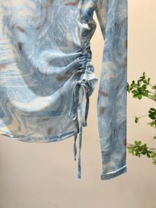 千禧风复古扎染网纱防晒衫夏季度假不规则抽绳长袖上衣设计感T恤