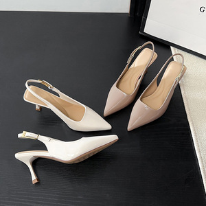 【スモールゴールドバーキット】ヌードカラー 5.5cm ハイヒール スティレット パテントレザー ポインテッドトゥ バックホール サンダル 51126-5