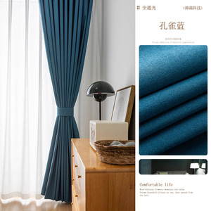 ログリネンスタイルカーテン 100% ホテルグレード完全遮光 2025 新和風綿とリネンの寝室とリビングルームのサンシェード布