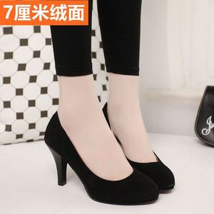学生礼仪空姐高跟鞋女细跟中跟黑色面试职业工作大码粗跟圆头皮鞋