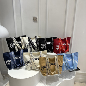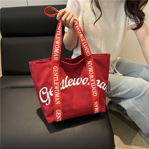 国境を越えた新しい学生キャンバスバッグ女性のシンプルなカジュアルコントラストカラーショルダーバッグ大容量収納ポータブルママバッグ